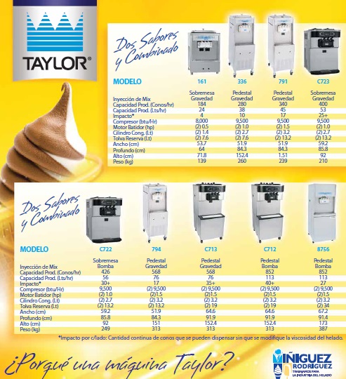 TAYLOR / Helado Suave / Yogurt / Dos Sabores y Combinado / Tabla comparativa todos los modelos